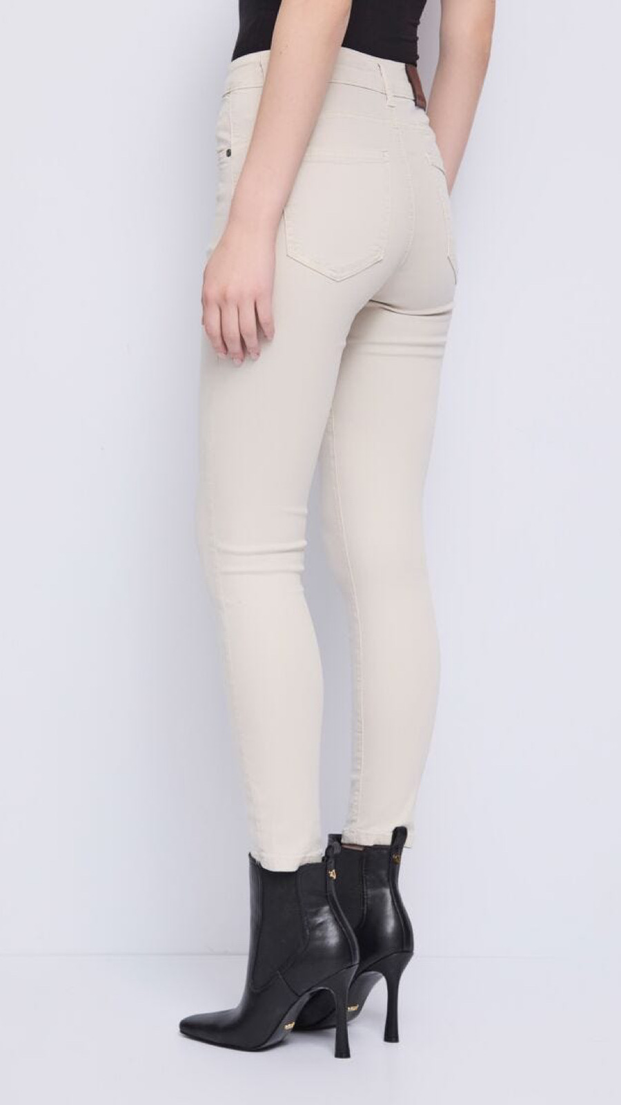 Tejido exterior: 94% algodón, 4% poliéster, 2% elastano Vaqueros push-up en denim elástico de mezcla de algodón Lavado usado Apliques de pedrería Cintura alta Pierna ajustada Largo crop Cinco bolsillos Parche del logo Cierre con botones y cremallera oculta