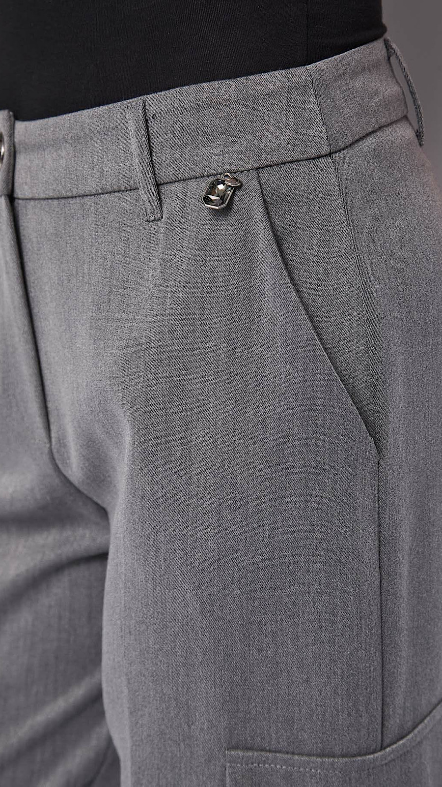 Tejido exterior: 70% poliéster, 25% viscosa (Lurex), 5% elastano Pantalón de mezcla de viscosa elástica Pliegues planchados Bolsillos en la cadera Bolsillos cargo Adorno de pedrería Cierre con botones y cremallera oculta
