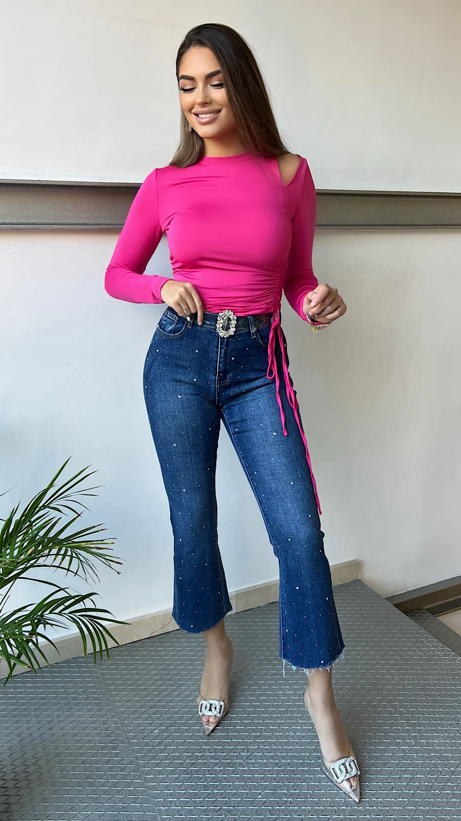 Camiseta Fucsia Abertura Hombro