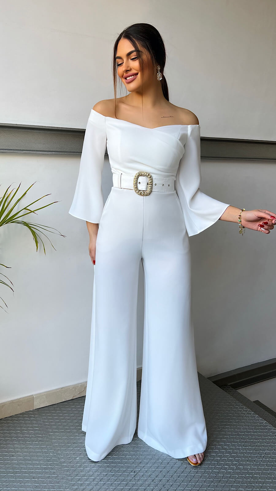Estiloso mono confeccionado en un tejido de máxima calidad con muchísimo movimiento. Es simplemente impresionante, cuando lo vimos puesto nos terminamos de enamorar por completo. Ajusta en la cintura marcando figura, quedando así muy estiloso. Cierre con cremallera central trasera invisible y doble corchete en cuello.