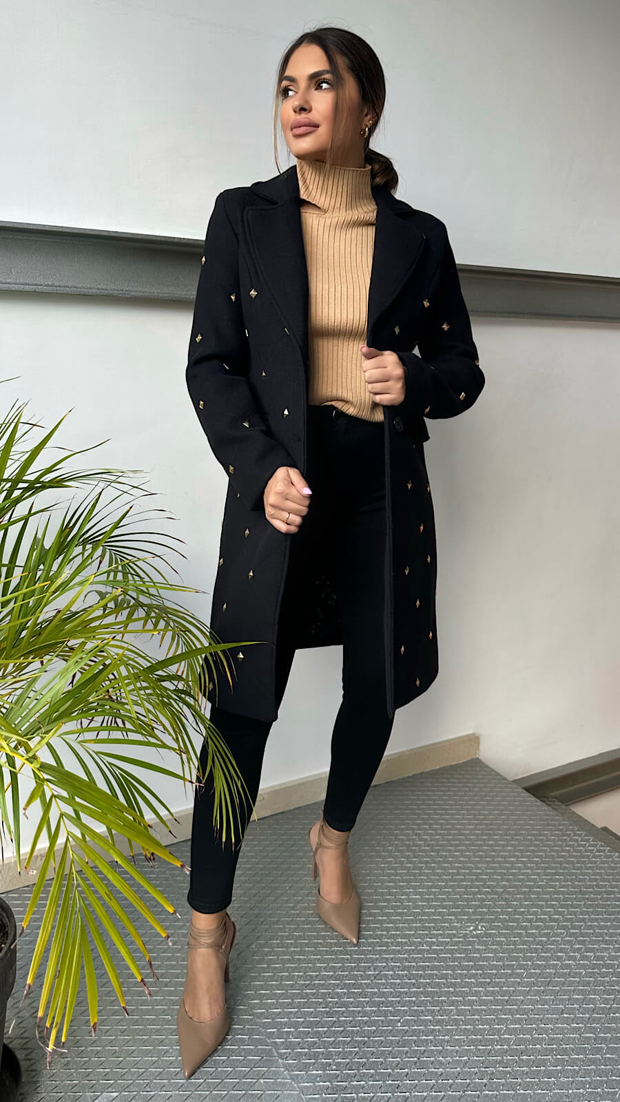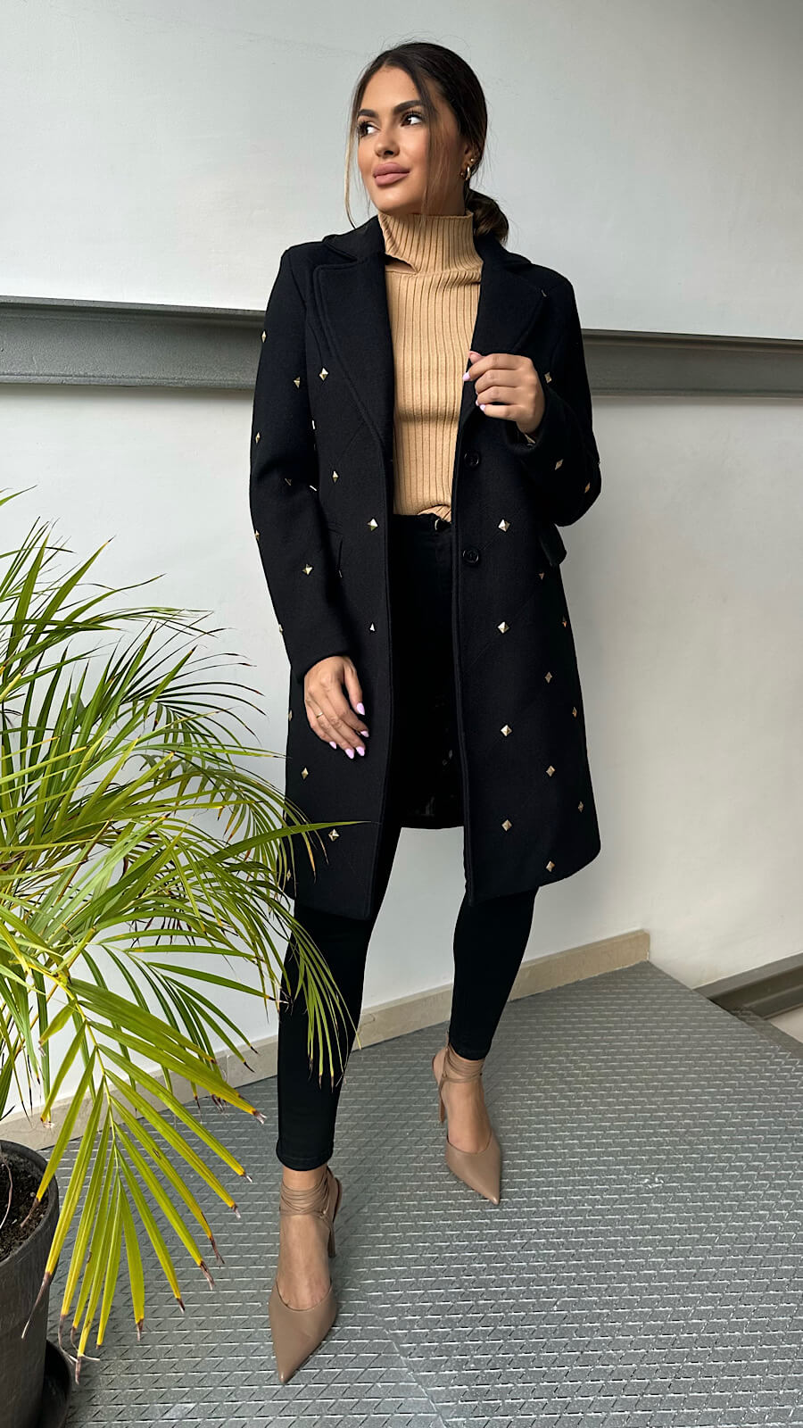 Tejido exterior: 70% poliéster, 25% viscosa (Lurex), 5% elastano Pantalón de mezcla de viscosa elástica Pliegues planchados Bolsillos en la cadera Bolsillos cargo Adorno de pedrería Cierre con botones y cremallera oculta