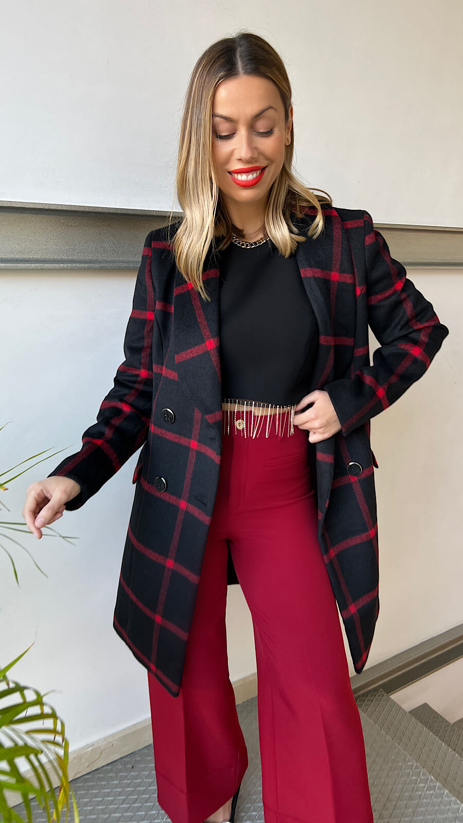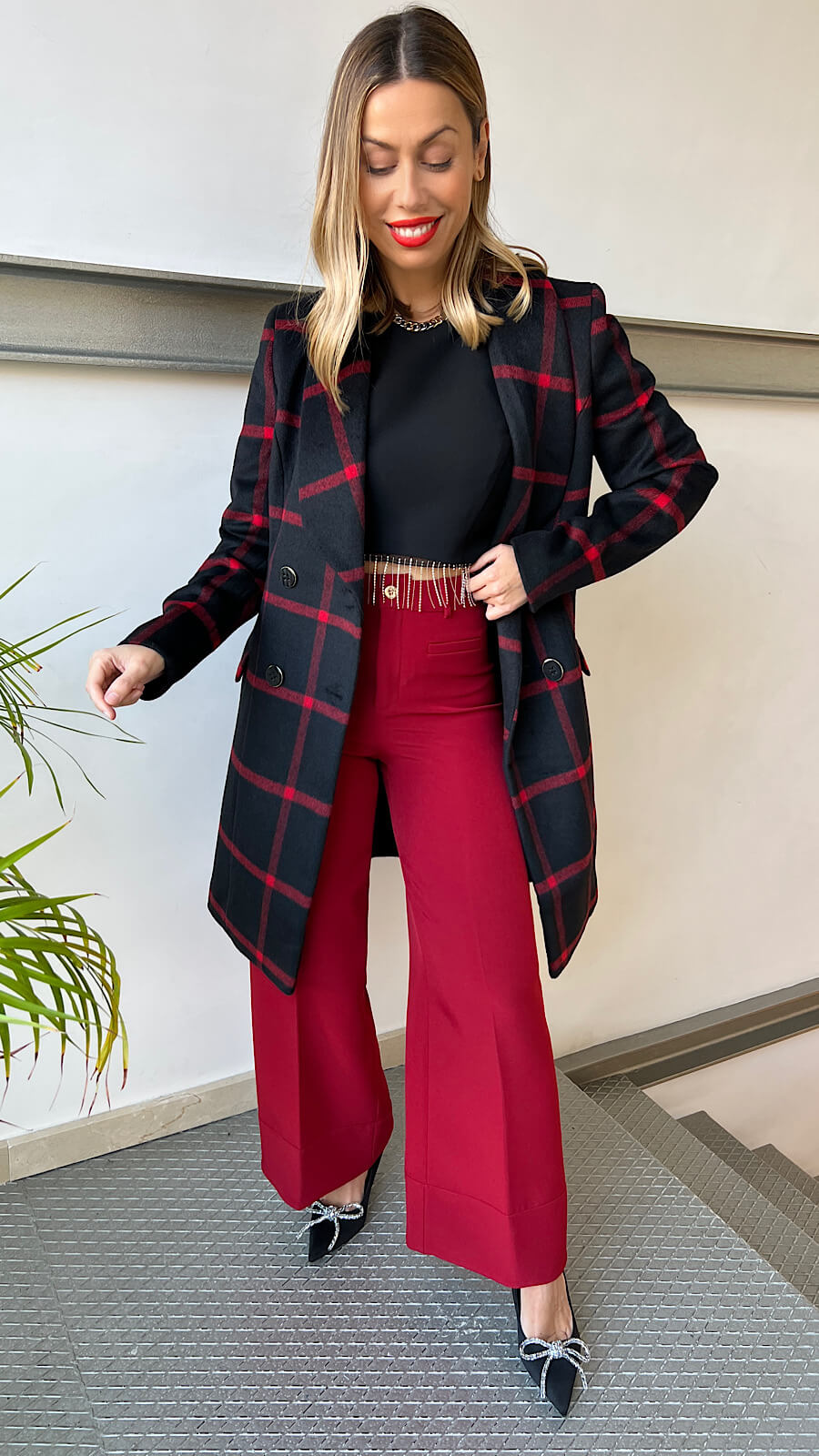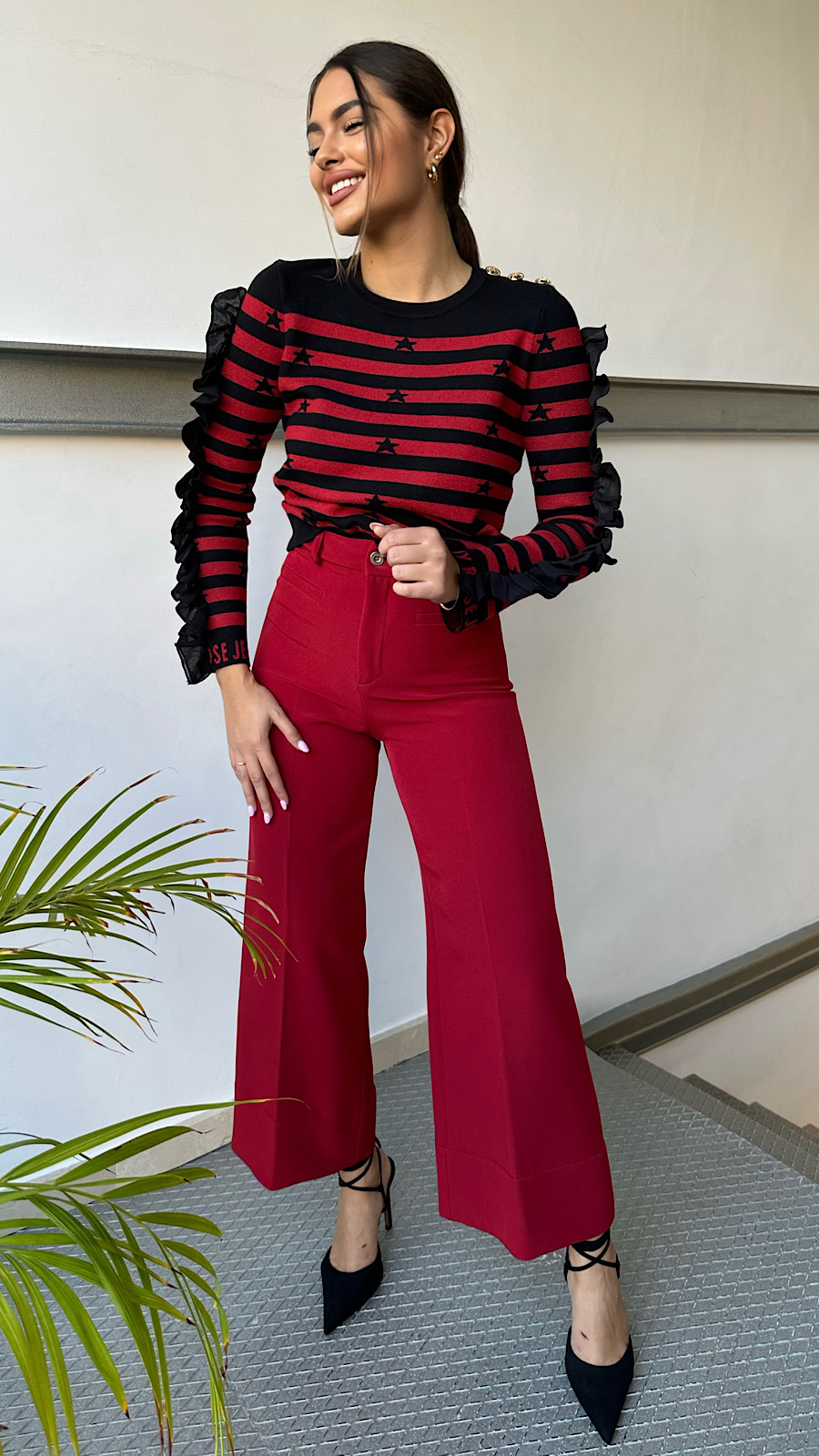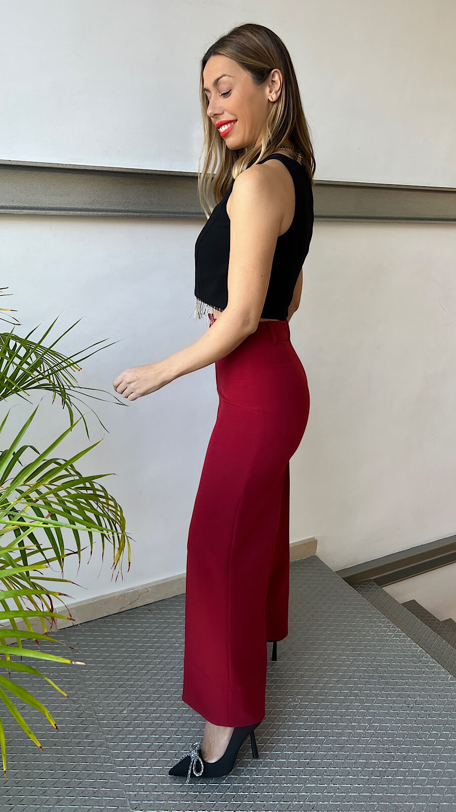 Pantalón Palazzo Rojo Detalle Doble Bajo