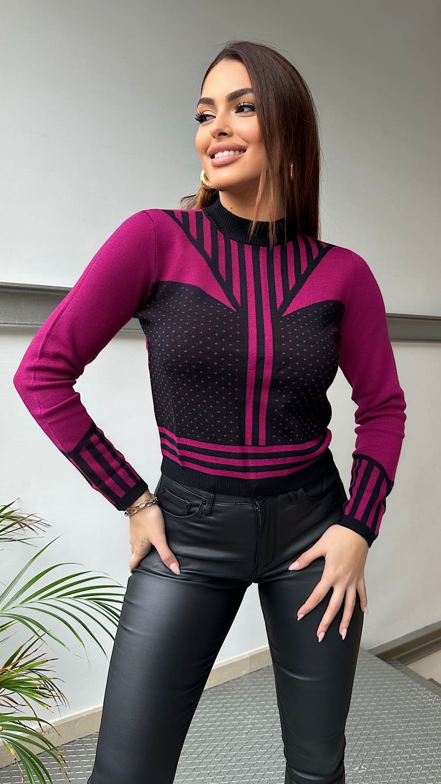 Suéter confeccionado con un suave hilo con print étnico en colores azul. Diseño de escote ovalado que puedes poner si así lo deseas caído de hombro. Detalle de terminación de cuello, puños y extremidad bordados en punto de canalé. Composición: 100%Algodón