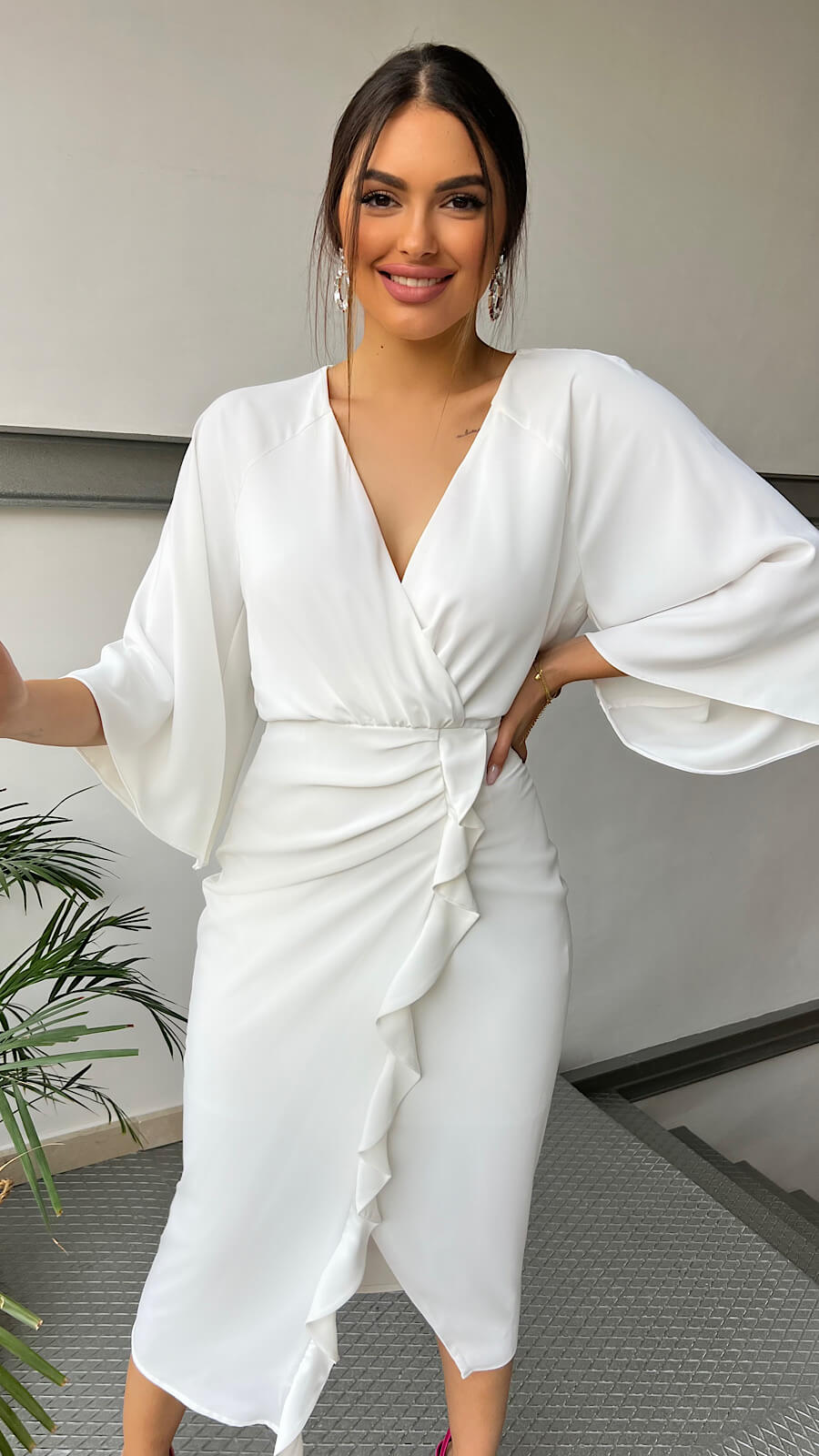 Luce este vestido lady con escote corazón drapeado y detalle de flores con perlas. Irás estilosa y diferente, un vestido que podrás ponértelo mil y una vez más!