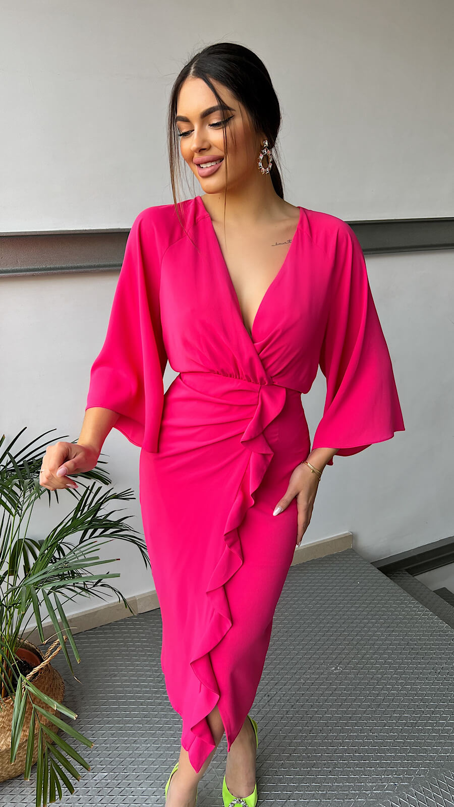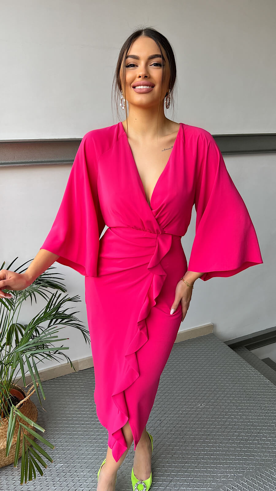 Luce este vestido lady con escote corazón drapeado y detalle de flores con perlas. Irás estilosa y diferente, un vestido que podrás ponértelo mil y una vez más!