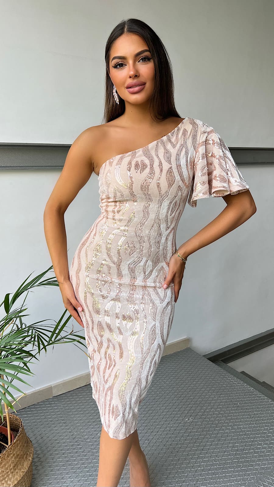 Vestido Paillette Dorado