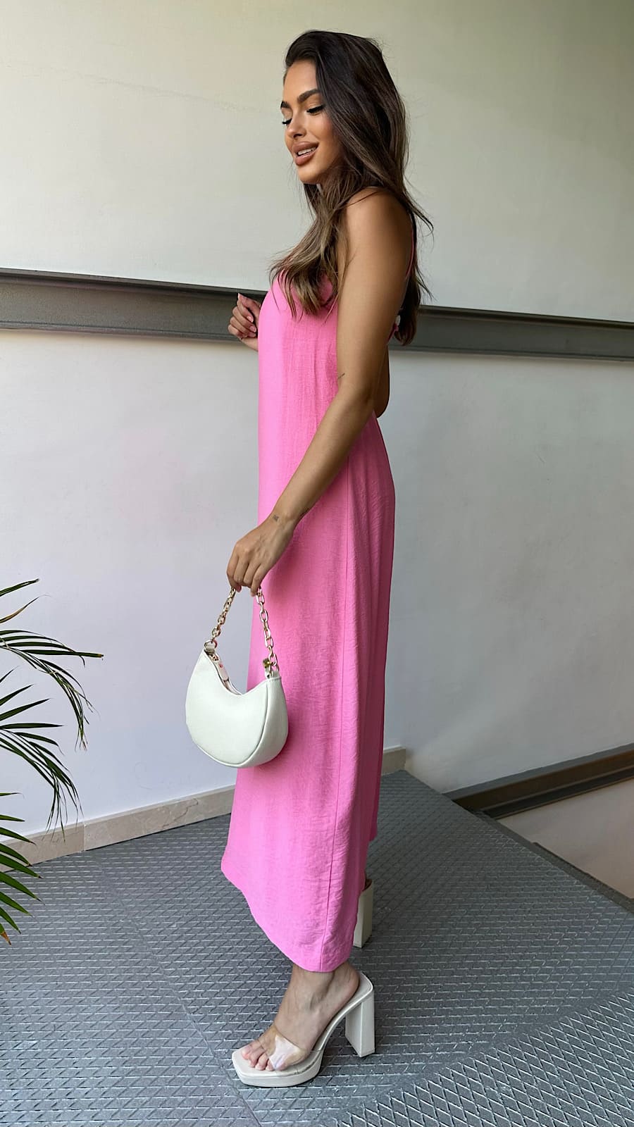 Vestido de largo midi en color bicolor asimétrico, mitad negro – mitad plata con manga francesa y escote corazón. Realizado en crepé y lamé elástico.