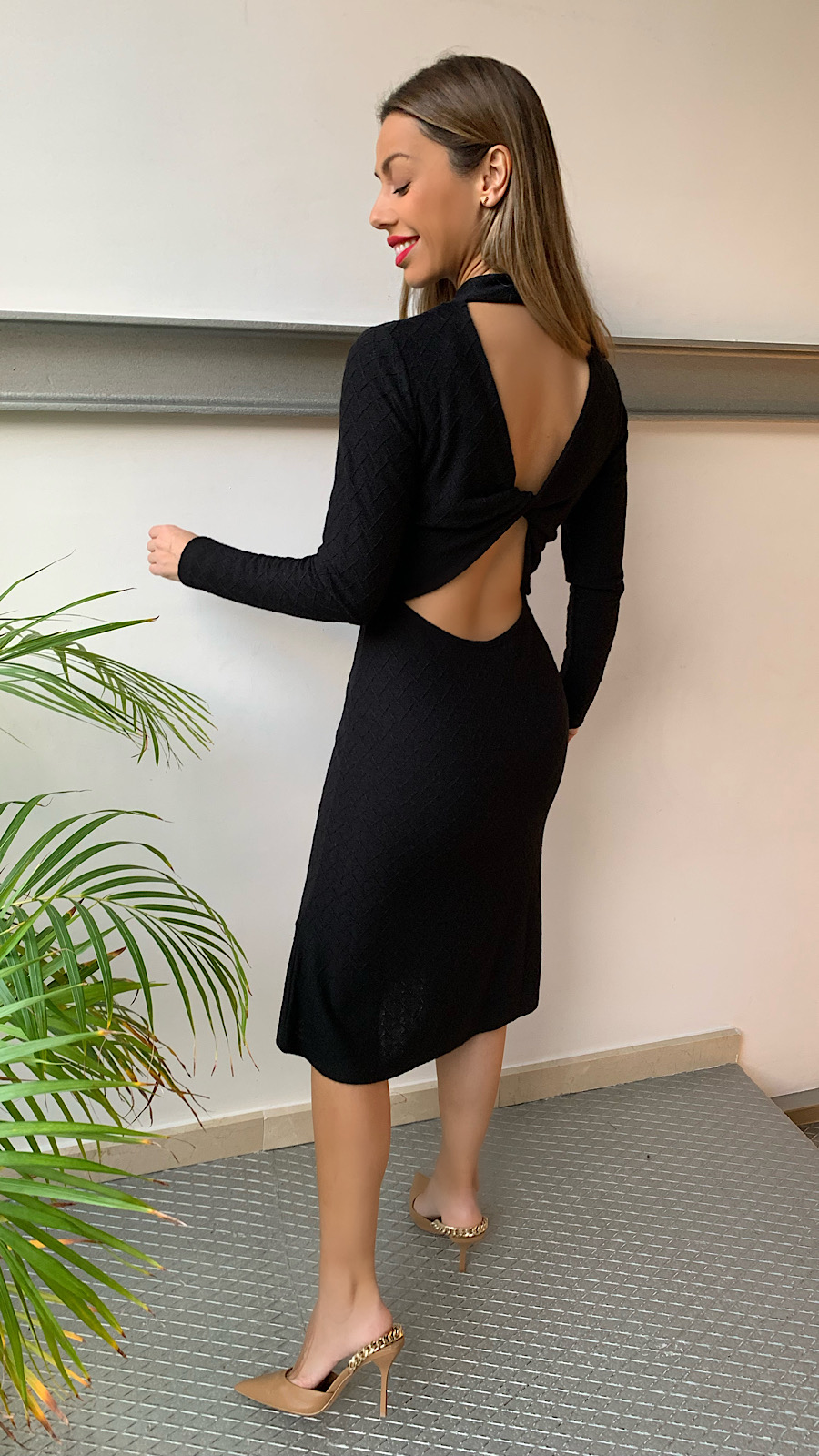 Vestido negro con diseño de manga tipo red que se puede poner o quitar. Tu decides, si quieres un vestido de manga larga o desmangado 😉
