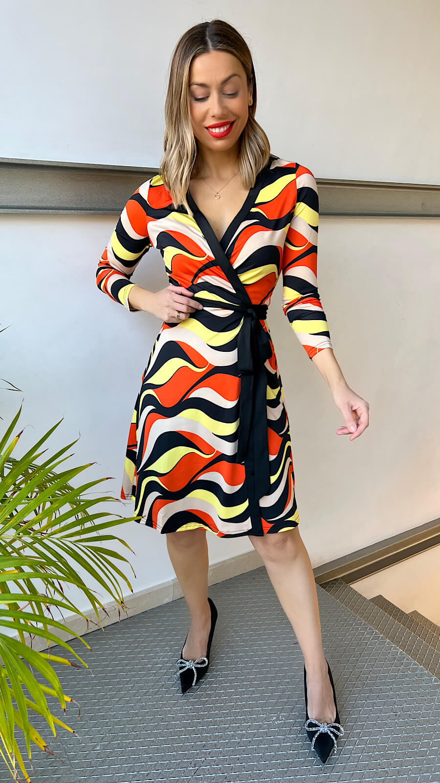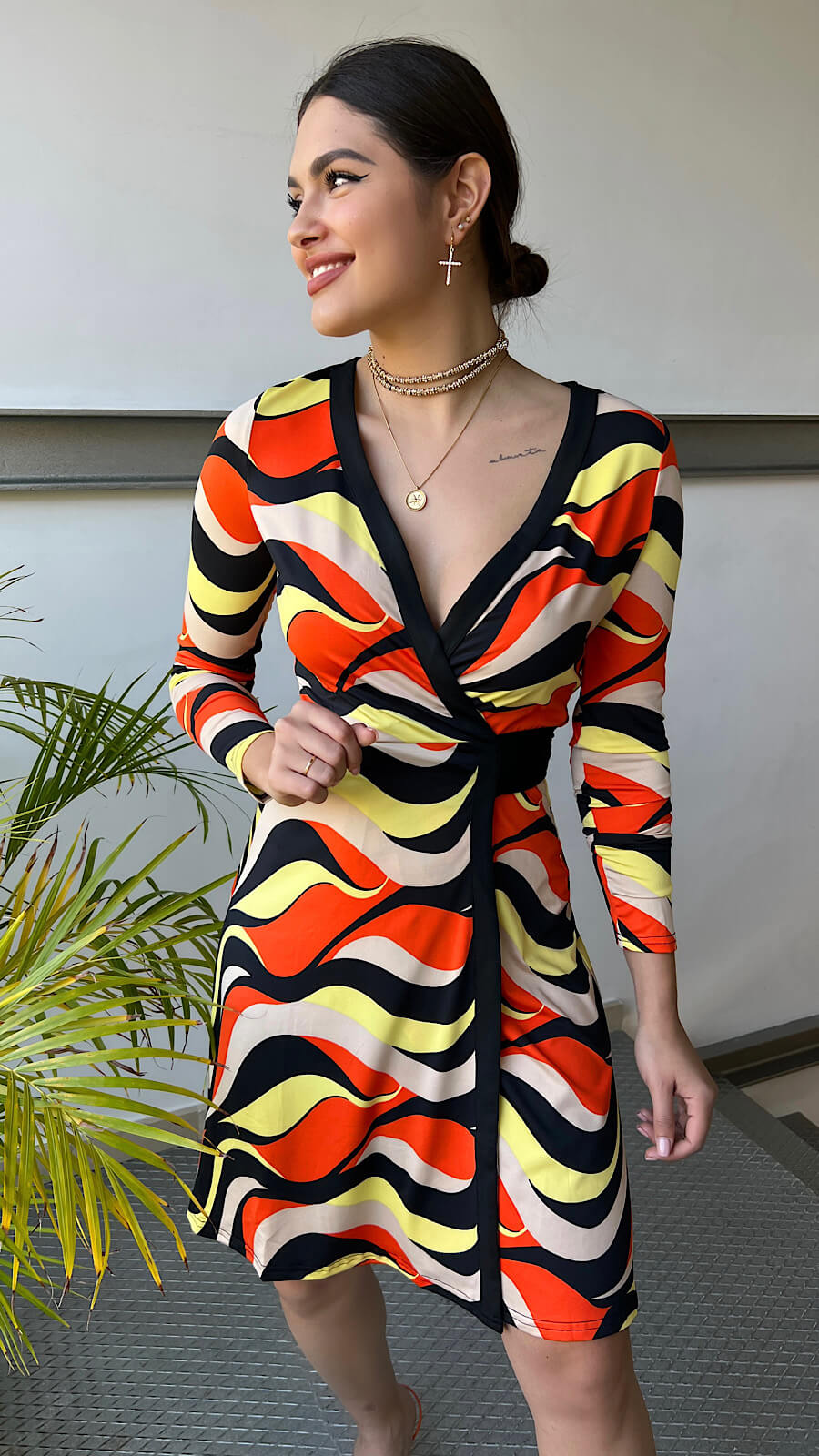 Luce este vestido lady con escote corazón drapeado y detalle de flores con perlas. Irás estilosa y diferente, un vestido que podrás ponértelo mil y una vez más!